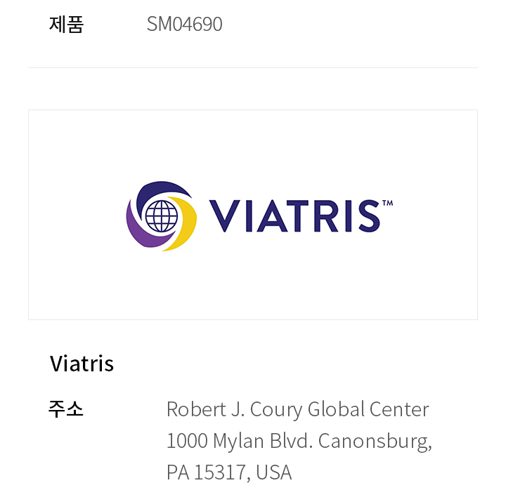 주소 Robert J. Coury Global Center 1000 Mylan Blvd.