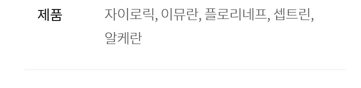 제품 자이로릭, 이뮤란, 플로리네프, 셉트린, 알케란